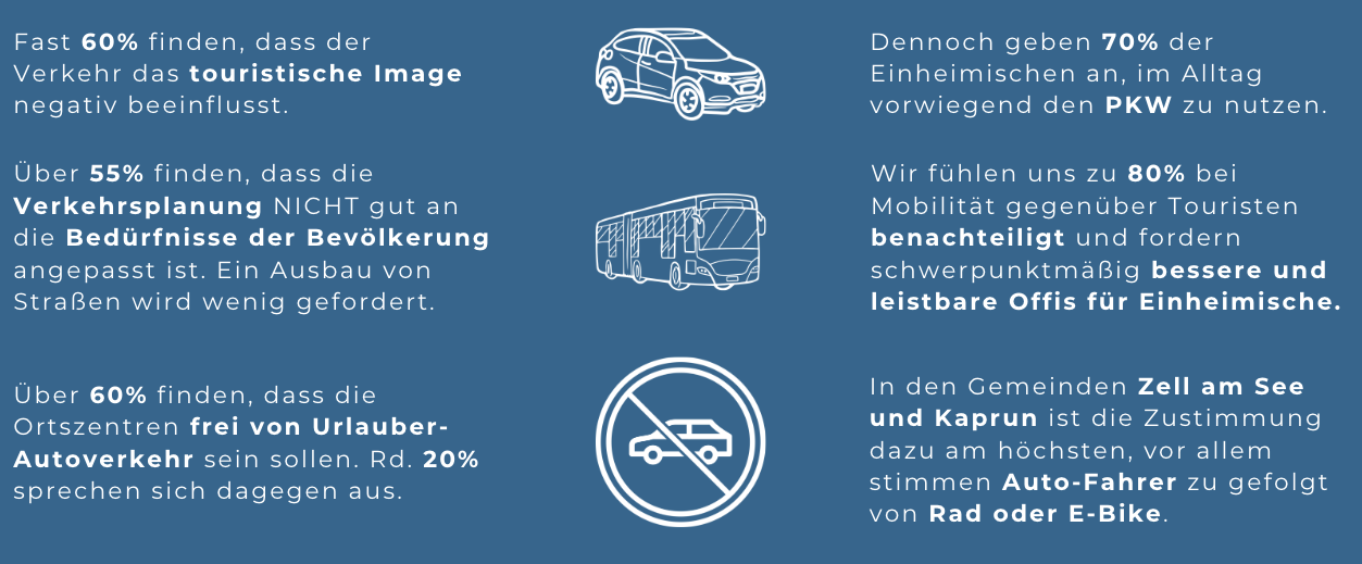 Park n' Ride Parkplätze für Urlauber / Gäste, Ortszentren frei von Urlauber-Autoverkehr.