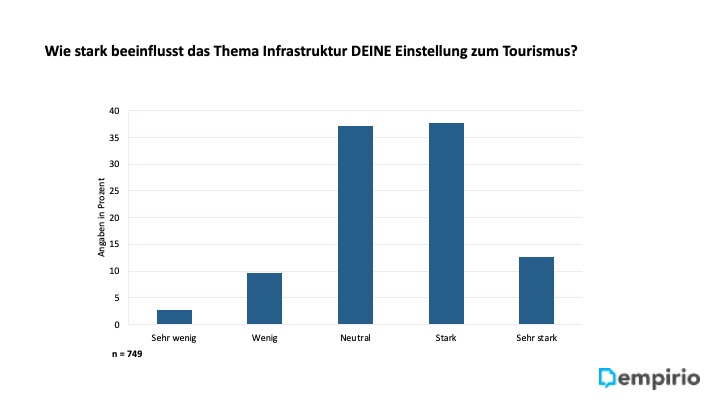 Für ca. 50% der Befragten beeinflussen Naturraum & Klima die Einstellung zum Tourismus stark bis sehr stark.